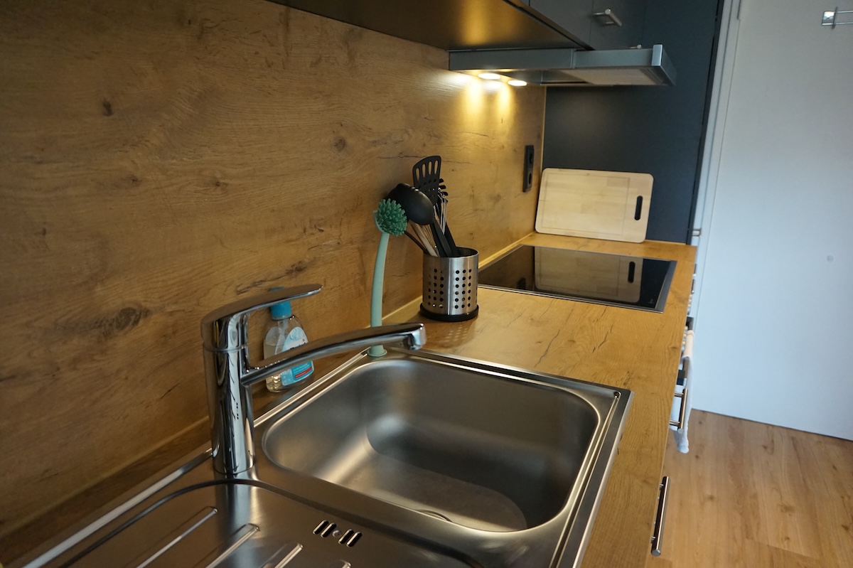 inklusive Kochutensilien, Geschirr und Spülmaschine