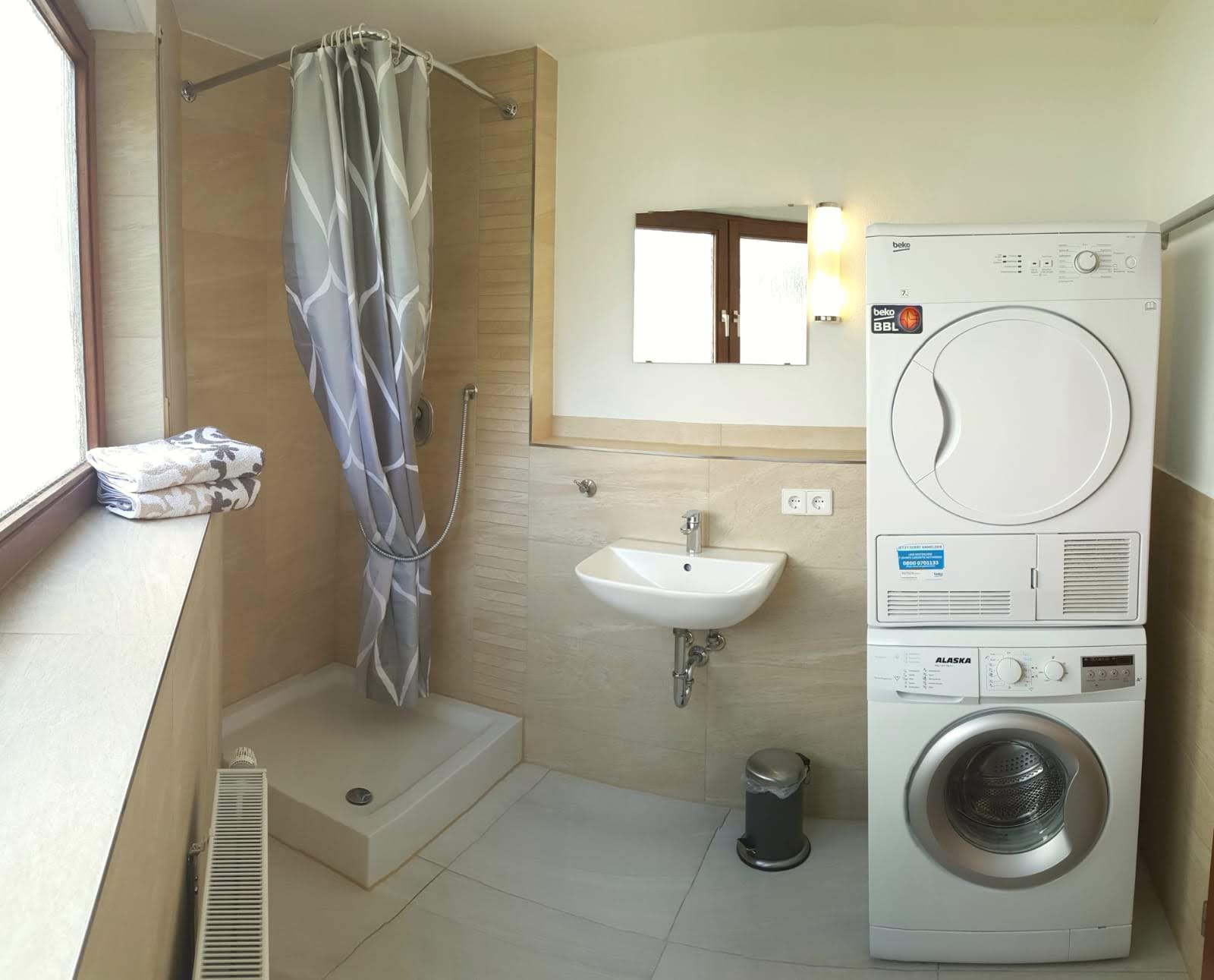 Waschmaschine und in den meisten Apartments auch Trockner